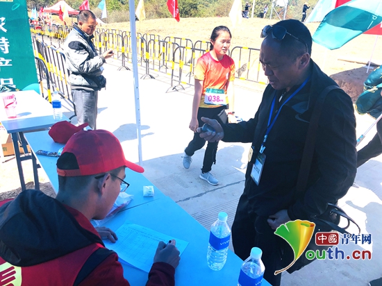 图为东北大学研支团志愿者在记录赛事成绩。 东北大学研支团 供图