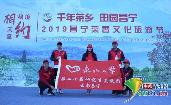 图为服务昌宁县茶香文化旅游节的东北大学研支团志愿者合影。东北大学研支团 供图