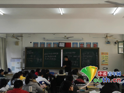 在物理课上的中南大学研支团江华分队队长邓子鑫。中南大学研支团 供图