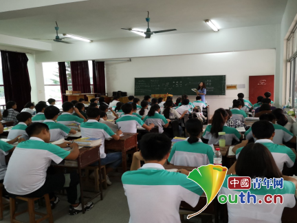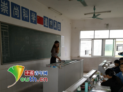 图为中南大学研支团江华分队成员陆河顺子为学生上物理课。中南大学研支团 供图