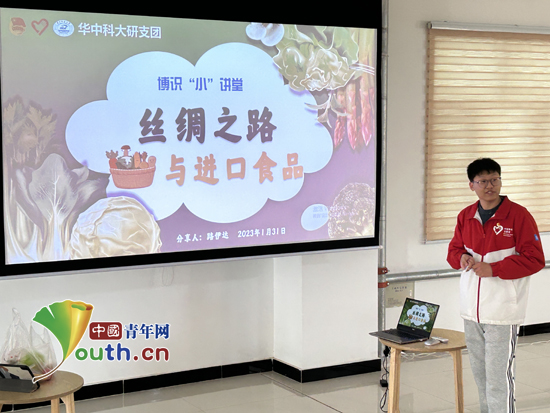 研支团成员路伊达讲述中国食物“胡番洋西”四大“外姓”的历史由来。华中科大研支团供图