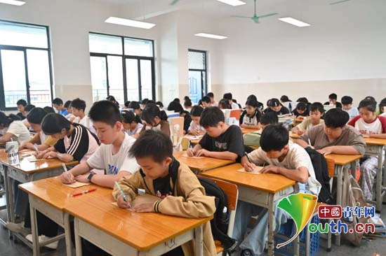 湖北工业大学第27届研究生支教团在广西壮族自治区富川瑶族自治县第一中学开展“传递爱·守护爱”信件速递公益活动。图为富川瑶族自治县第一中学的学生们正在写信。湖北工业大学研支团供图