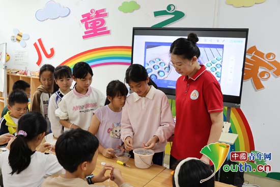 队员们通过“如何选择基质”“营养液配比调试”“水培蔬菜生长观察日记”等内容,指导孩子们完成小麦草的无土种植全过程。随后,队员们通过与传统栽培方式的对比,带领孩子们了解无土栽培节水、省地、易管理的优势,引导孩子们从学会种植到思考科技与自然的关系,强化对科学改变生活、科技守护生态的认同感,让看似遥远的农业科技真正“走进”孩子们的认知里。