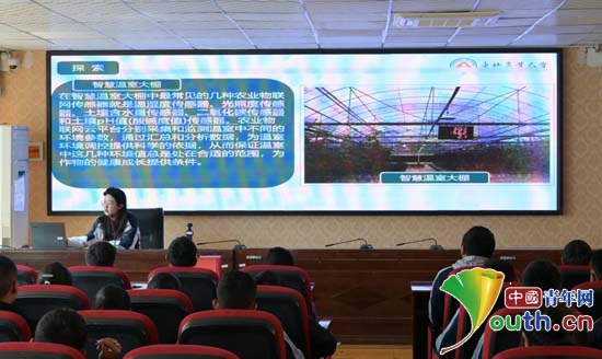 在西藏自治区昌都市第二高级中学,研支团成员为学生科普智慧农业知识。东北农业大学研支团供图