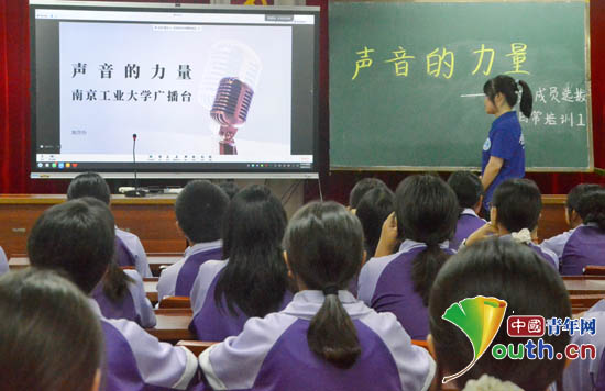 南京工业大学第27届研究生支教团云南宁洱分团携手南京工业大学广播台,在宁洱镇第一初级中学举办播音主持特色课程活动。南京工业大学研支团供图