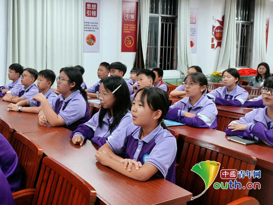 宁洱镇第一初级中学的学生们认真聆听“声音的力量”主题云讲堂。南京工业大学研支团供图