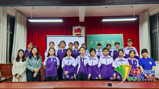 南京工业大学研支团成员与宁洱镇第一初级中学校园广播站成员合影。南京工业大学研究生支教团供图