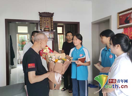 活动中,由学校师生代表、团锦屏县委及县退役军人事务局相关负责人组成的慰问团,看望了抗美援朝老兵龙光荣。在老人家中,学生代表将他们写的信件递到爷爷手中,并转达了同学们对他的崇高敬意。师生们围坐在老人身旁,认真聆听龙光荣爷爷讲述他参加抗美援朝战争的那段烽火岁月。团县委与县退役军人事务局的同志向龙光荣老人表达了诚挚的问候,感谢他为国家和人民作出的贡献,并详细了解了他在生活上的需求,表示将继续做好服务保障,让老兵安享晚年。