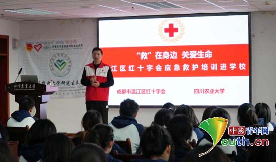 四川农业大学第28届研究生支教团开展应急救护培训。四川省成都市温江区红十字会培训员为研支团成员讲解救护知识。四川农业大学研支团供图