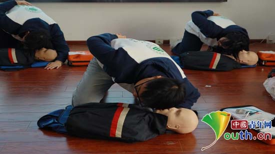 研支团成员进行救护技能演练。四川农业大学研支团供图