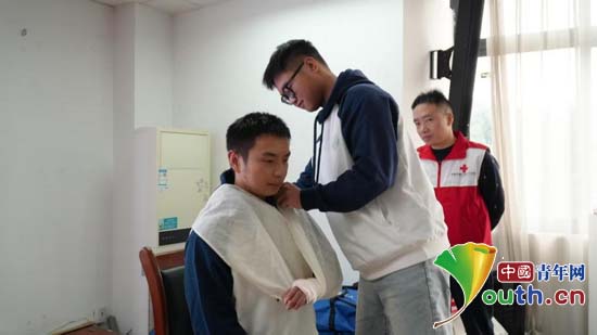 研支团成员学习创伤包扎技能。四川农业大学研支团供图