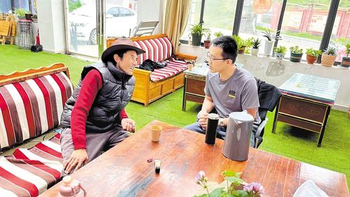 2024年7月,周保进(右)与农牧民党员谈心。受访者供图