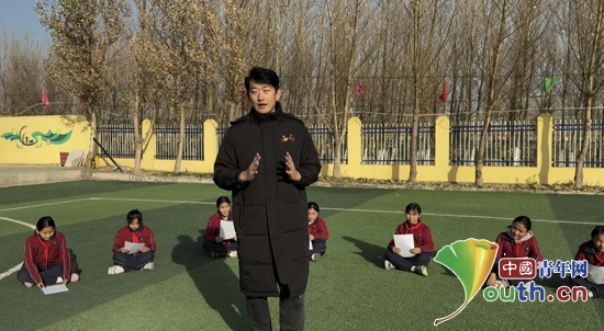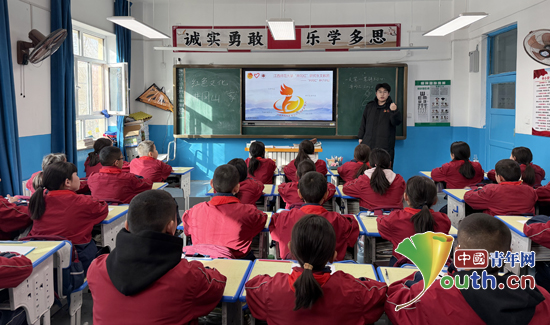 研支团成员为学生讲述故事“朱德的扁担”。江西师范大学“井冈红”研支团新疆分队供图