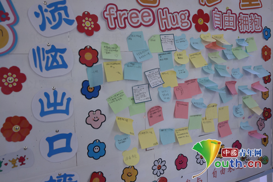 图为贴满学生留言的“烦恼出口墙”。华中师范大学研支团新疆分队供图