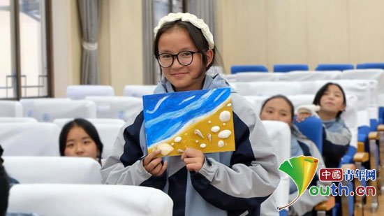 与此同时,广东汕尾的学生们则被雪域高原的壮美景色所震撼。一幅描绘雪山脚下层林尽染的金色画卷在同学们手中传递。通过这一幅幅具体可感的作品,远在数千里之外的风物、气息与情感,仿佛穿越千山万水,真切地呈现在彼此面前。
