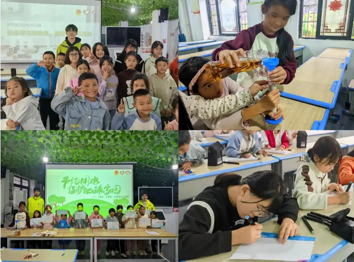 “快看,水真的变清了!”净水实验课上,孩子们围在实验装置旁,目不转睛地盯着逐渐清澈的水面,不时发出惊叹。在《“脏水”大变身,我是小小净水工程师》与《快乐学习加油站》课程中,志愿者们带领孩子们动手拼接、调试设备,亲身感受科学的魅力。孩子们在探索中学习,在实践中思考,对未来的向往被悄然点燃。