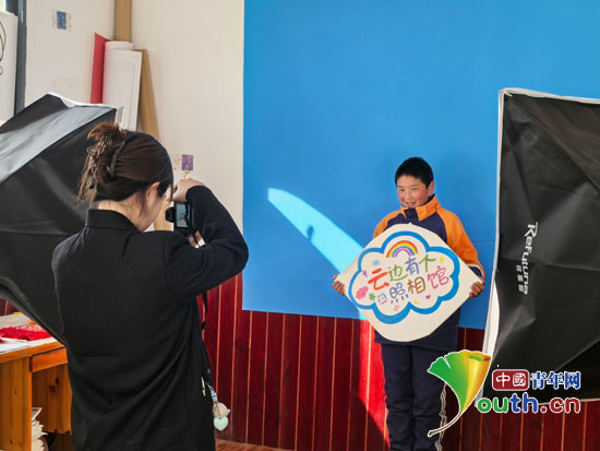 在日常教学中,研支团成员发现,许多牧区的孩子几乎没有一张属于自己的肖像照。于是,他们决定在校园里创办了“云边有个照相馆”。