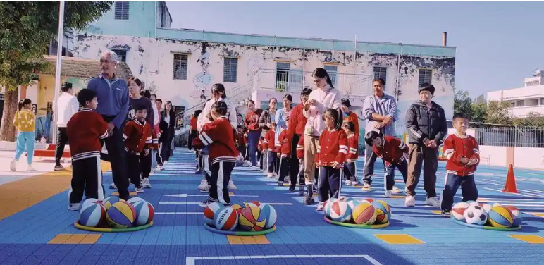 在志愿者、学校以及公益组织的合力推动下,学生们迎来了一个更大、更漂亮的新操场。“孩子们都特别高兴!原本操场占地200平方米左右,现在扩大到500平方米左右,变得更加规范,也更加适合孩子们去跑跳运动。”