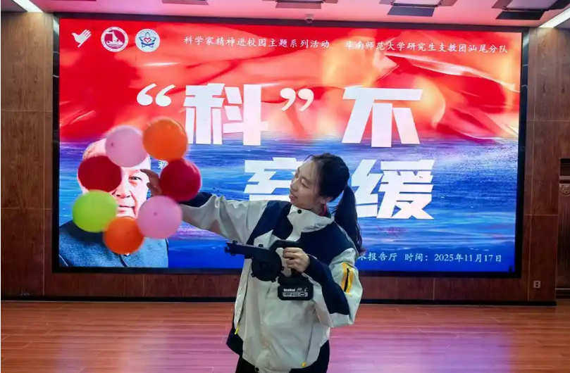 在李晓慧到来之前,上一届的华师研支团成员同样聚焦科学教育领域的创新。2025年暑期,华南师范大学第26届研究生支教团原创舞台剧《深海赤诚》入选中国科协2025年“科学家故事舞台剧推广行动”重点培育剧目,该剧以支教点白沙中学杰出校友、“中国核潜艇之父”黄旭华院士事迹为蓝本进行创作。研支团创新采用“思政课讲授+课本剧展演”的形式,通过“学弟演学长”的独特方式,让科学家精神在乡村学子心中生根发芽。