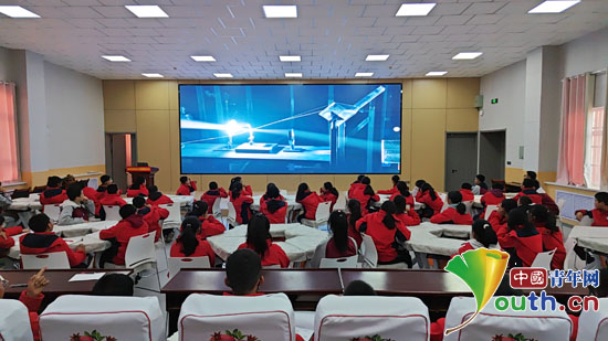 福州大学研究生支教团在宁夏回族自治区吴忠市红寺堡区第四中学开讲趣味物理启蒙课。学生们在线观看研支团成员操作的实验。福州大学研支团供图
