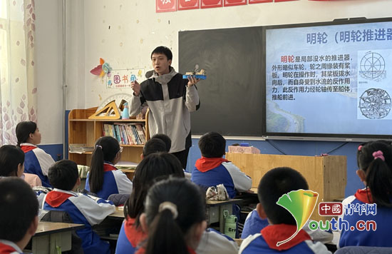 研支团成员为孩子们讲解明轮船的相关知识。江苏科技大学研支团供图