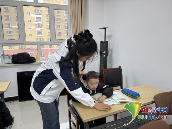 研支团成员为孩子辅导功课。东北农业大学研支团供图