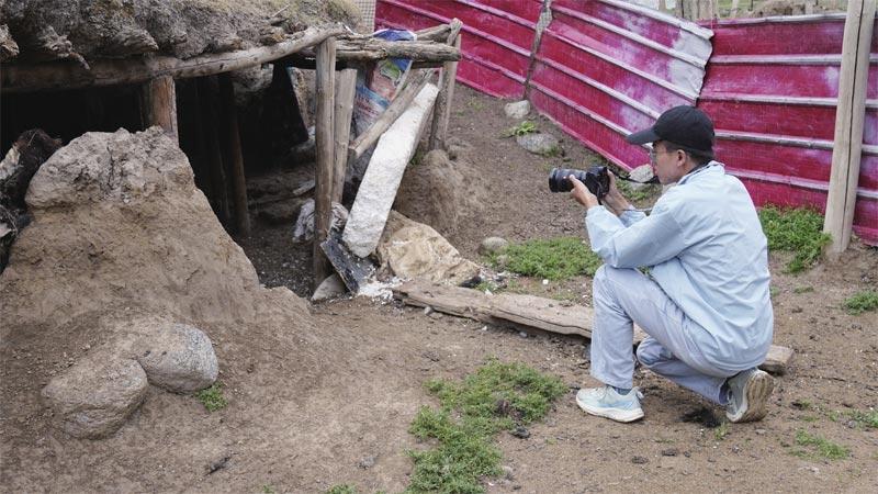 在工作中拍摄“牦牛巡边宣讲队”素材。作者供图