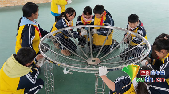 孩子们动手制作“天眼”模型。 中国青年网通讯员姜政帅供图
