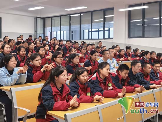 在互动环节,学生积极提问。华中科大研支团供图