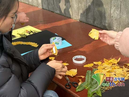 四川省宜宾市翠屏区西部计划项目办开展“绘叶迎新年,聚力谱新篇”主题团日活动暨2026年元旦慰问活动。翠屏区项目办组织志愿者捡拾落叶制作树叶贴画。翠屏区项目办供图