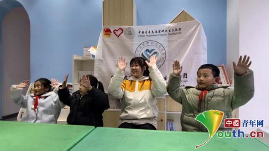 研支团成员龙婉婷带领小朋友学习韵律操。四川农业大学研究生支教团供图