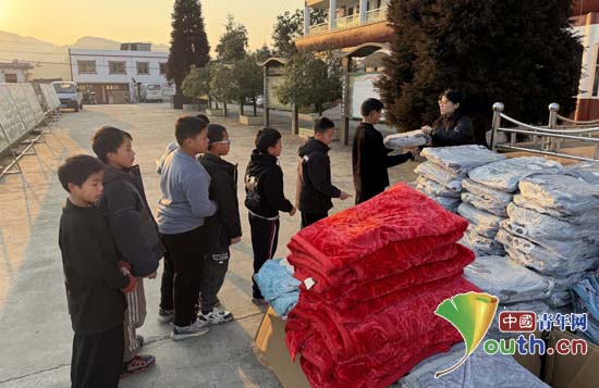 合肥工业大学第27届研究生支教团在贵州省丹寨县长青二小、金钟一小和剑河县城关五小三所支教学校举办“暖冬计划”爱心物资发放仪式。图为丹寨县金钟一小活动现场。合肥工业大学研支团供图