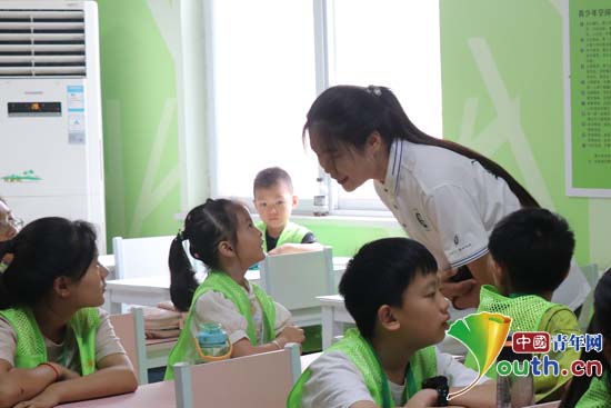 姜欣娜在教学实习的课堂上与孩子进行交流互动。姜欣娜供图