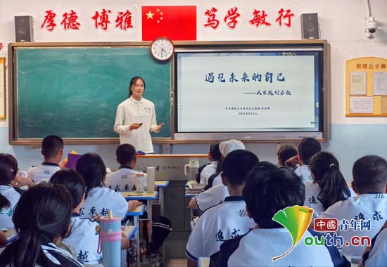 自习的值班、学生宿舍的走访,姜欣娜用一百多个日夜的陪伴,见证着每个孩子的成长。从初登讲台的忐忑生涩,到如今的从容自信;从对当地学情的陌生,到教学方法的娴熟运用,她在教学相长中完成了从学生到教师的蜕变。每当看到学生们眼中闪烁的求知光芒,听到他们亲切地喊着“小姜老师”,她就更加坚定自己的选择——在这片美丽的土地上,用青春浇灌希望,用暖心守护成长。