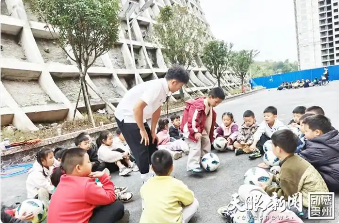他认为,这样的转变离不开贞丰县浓厚的“村超”氛围。“那段时间,‘村超’正火热进行,我就把比赛当作足球课的‘活教材’。”马金涛说道。他会在课堂上给孩子们分享“村超”的比赛画面:球员们在泥地里也拼尽全力奔跑,观众席上挥舞的彩旗和呐喊声,甚至还有小球迷在赛场边模仿射门的样子……所有这些画面,被他讲述得栩栩如生。“每次讲完,孩子们眼睛都亮晶晶的,越来越想亲自踢一次、赛一场。”