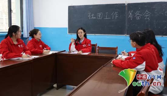 华中师范大学第27届研究生支教团新疆喀什分队于喀什大学附属中学开展社团课程活动。图为研支团成员进行社团课程筹备工作。华中师范大学研支团供图