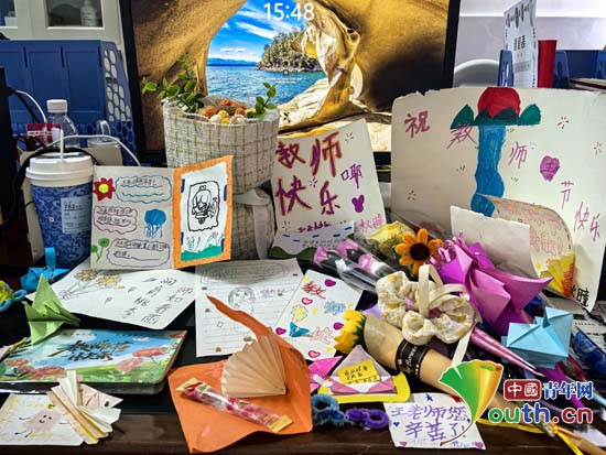 2025年教师节,研支团成员收到孩子们赠送的小礼物。南京农业大学研支团供图