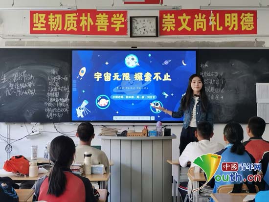 在服务学校,研支团成员们是60个班级、2570余名学生的“小老师”。他们肩上担起的是14门学科的教学任务。从语数外到音体美,他们在各自的“责任田”里精耕细作。这学期,他们累计授课2300+课时。每一堂课程的背后,是60余次的集体备课、200余次的课后反思,以及向当地老师N次的虚心求教。截至目前,他们已完成19次大型学业检测,参加了13次教学技能培训。他们深知生动的课堂和扎实的技能是成为一名合格教师的第一步,站稳讲台是支教的“第一生命线”。