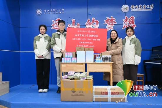 研支团成员向服务学校捐赠爱心物资。南京农业大学研支团供图