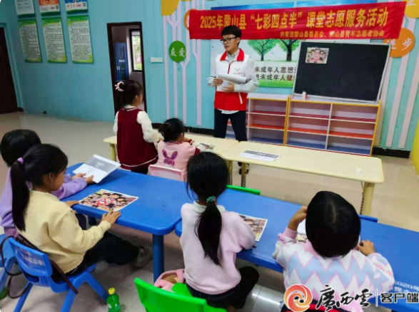 邵义颖在蒙山县“七彩四点半”课堂志愿服务活动中为学生拓展课外知识。李美莹摄