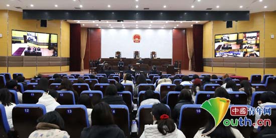 四川省资中县项目办组织西部计划志愿者开展“以案说法”实践活动。图为西部计划志愿者旁听庭审现场。资中县项目办供图