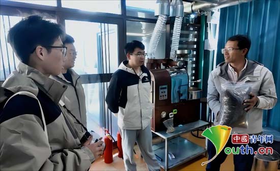 楠迪公司负责人储明孝向实践队队员介绍了公司引进先进技术指导咖农种植,实现企业效益和社会责任双赢的情况。大连理工大学研支团供图