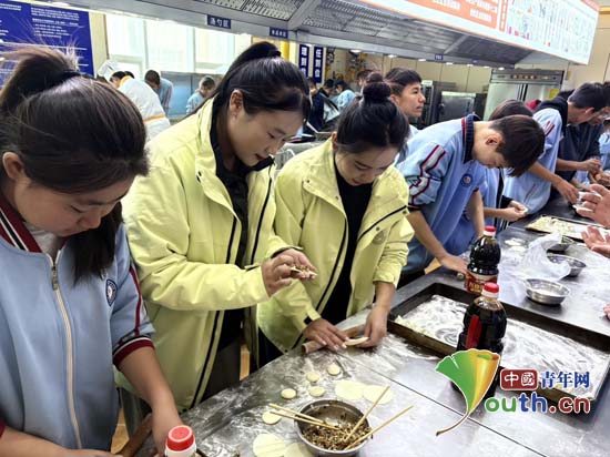 宋玉嘉与学生们一起包饺子过元旦。宋玉嘉供图