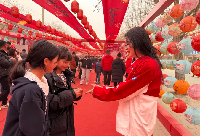 中午,庙会迎来人流高峰,张岩在游戏互动区、美食区、展示区间穿梭,灵活切换“游戏指导员”“秩序守护者”“咨询服务员”等多重身份,耐心解答活动流程、交通路线、美食点位等各类问题,以温馨指引和贴心帮扶,为游客营造舒心有序的游玩环境。“庙会服务关乎大家的体验,容不得半点马虎。”张岩说,看到市民脸上洋溢的笑容,所有疲惫都化为了满满的成就感。