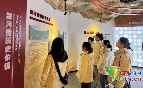 研支团成员们在讲解员的带领下,依次参观了“深河桥的历史见证”“独山抗敌”等主题展区。泛黄的历史照片、珍贵的实物展品,生动再现了那段烽火岁月。在“独山阵亡将士纪念墙”前,成员们驻足凝视,深刻缅怀为民族解放事业献身的革命先烈,从厚重的历史中汲取奋进力量。