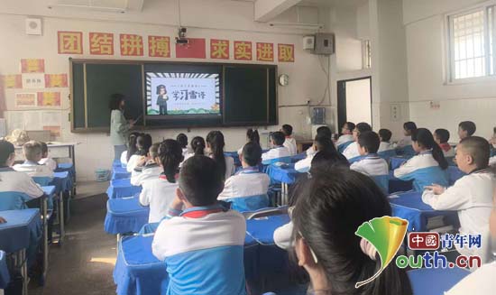 研支团成员杨佳莹在镇康县第一中学开展学雷锋主题班会。中国农业大学研支团供图