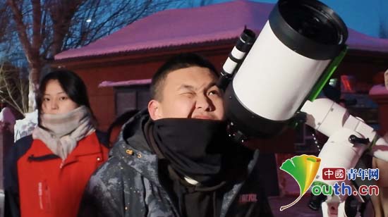 吉木乃县高级中学学生通过望远镜进行天文观测。北京航空航天大学研支团供图