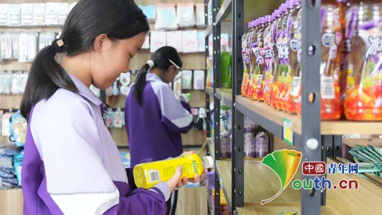 南工大研支团组织宁洱镇第一初级中学的学生走进学校超市开展消费维权实地调研。南京工业大学研究生支教团供图