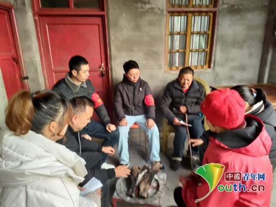 潘刚与同事上门走访了解群众的难处。潘刚供图