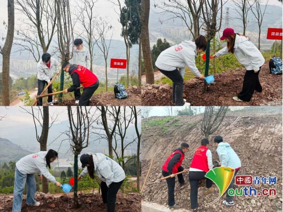 陕西科技大学第27届研究生支教团成员在四川省马边彝族自治县参加义务植树活动。图为志愿者在植树活动现场。中国青年网通讯员聂晶晶供图